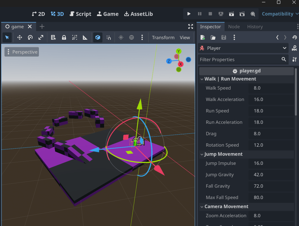 Character controllers are a tricky thing to get right. It takes a lot of effort to make a game feel good, and a character controller is something that has a huge effect on how your players judge your game. I have spent a lot of time researching how to make a controller that achieves this high standard of game feel, while simultaneously trying to keep the code somewhat consolidated. I think I was successful in my mission.
